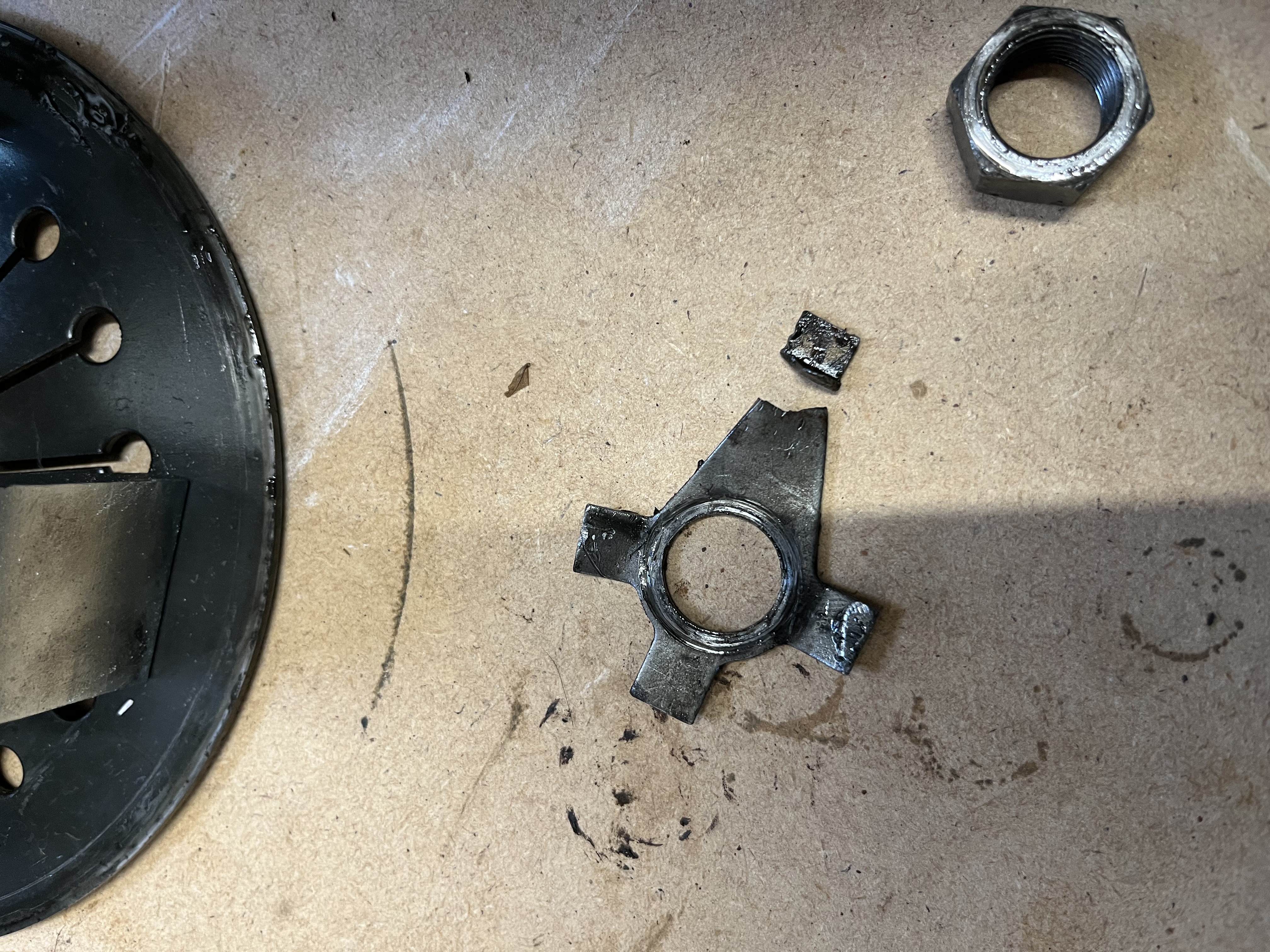 Found a broken tab washer inside the clutch basket, the parts book show it should be a normal lock washer.