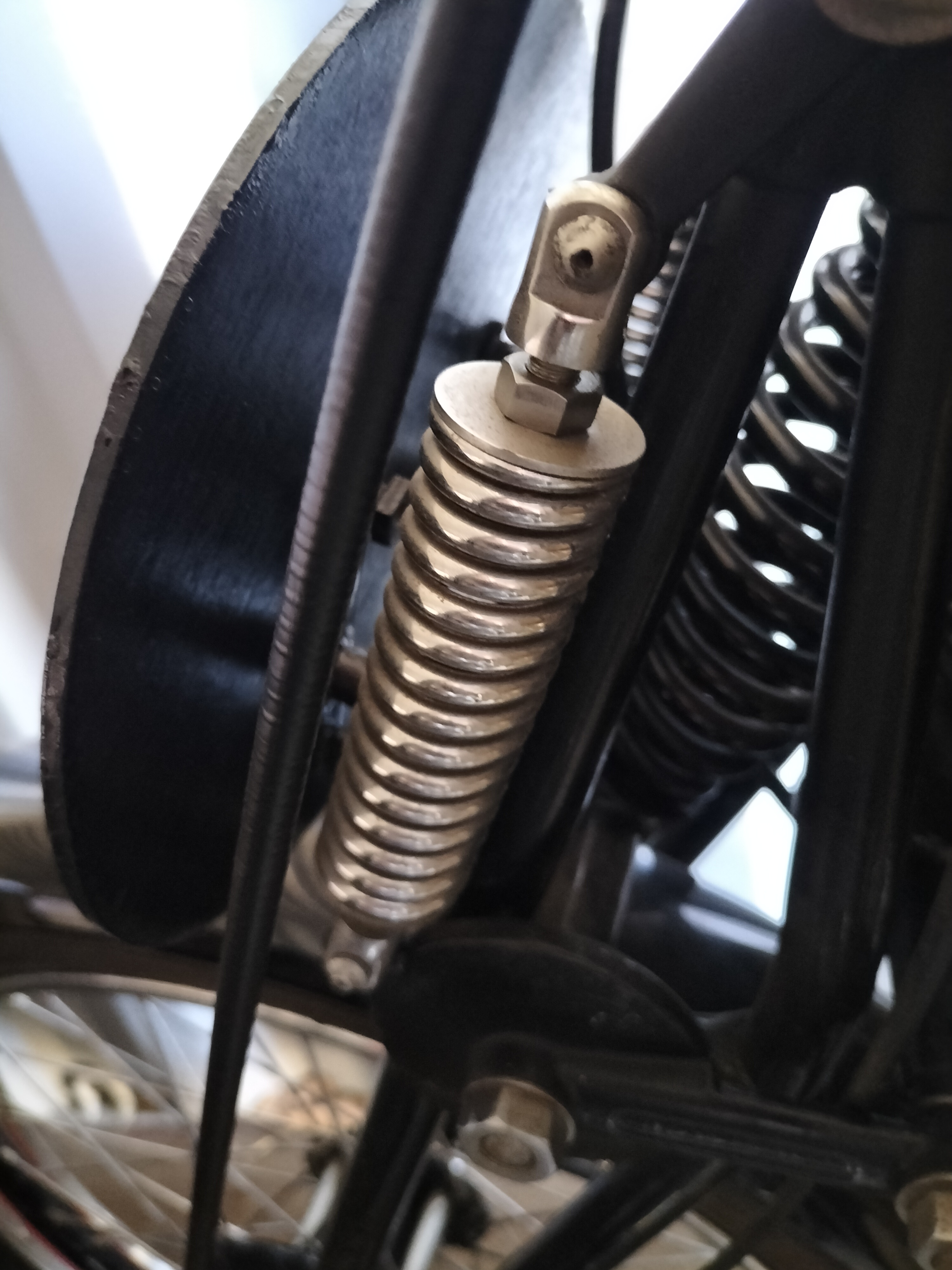 The purpose of the adjustable springs was for setting the tension for individual race circuits depending on the surface and terrain conditions. On the road models the side friction damper could be adjusted to give the most comfortable ride. Over the years many road models have been fitted with the racing springs as reproductions are more available and they are considered more desirable as a racing feature (?).